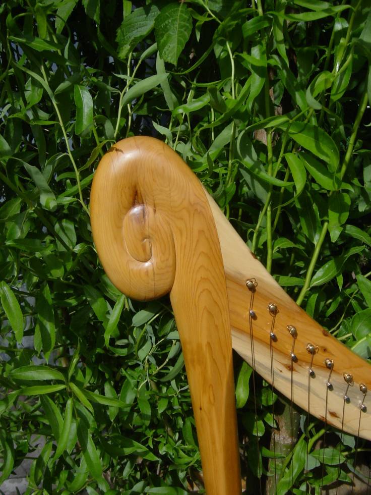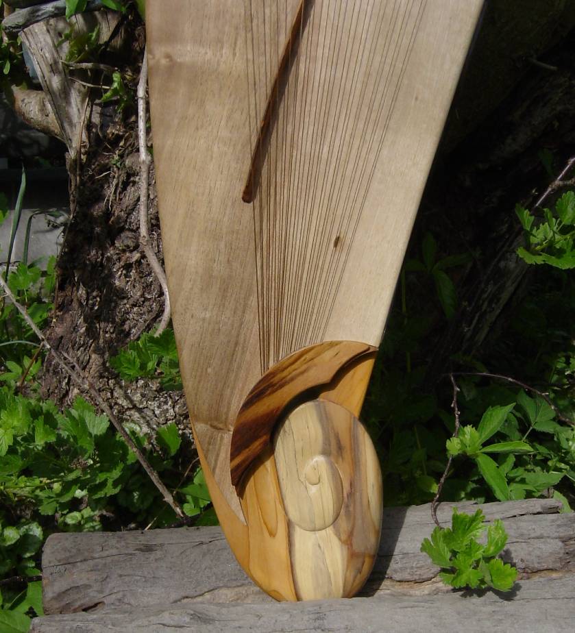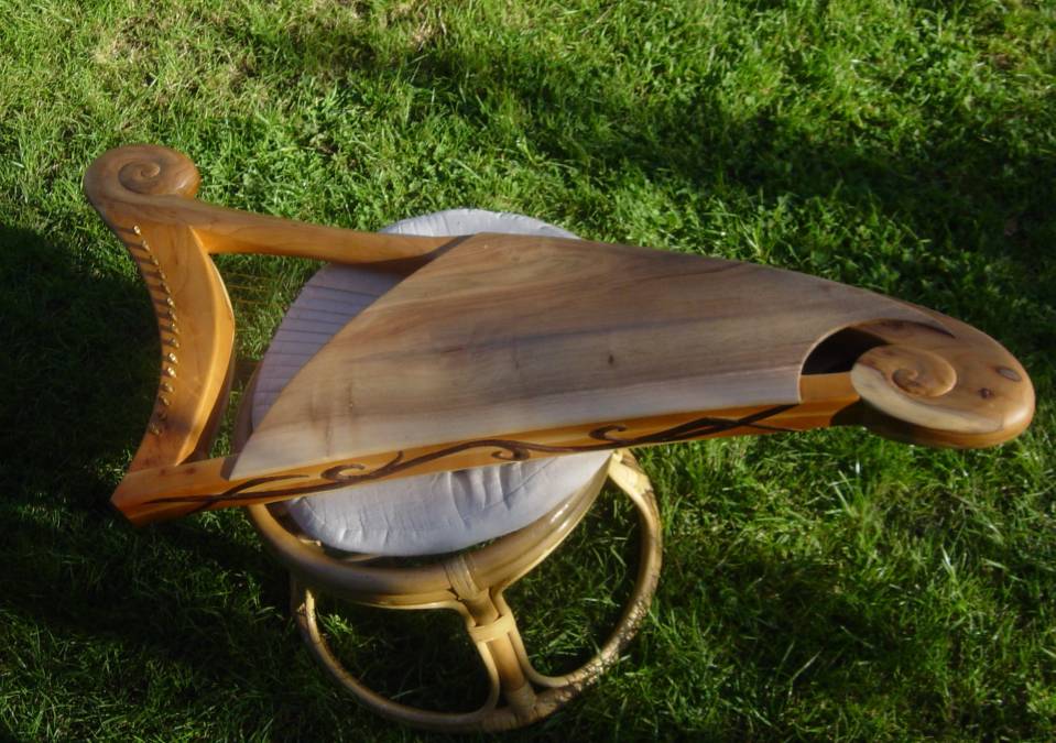 Resonanzdecke: ein Stück Walnußholz mit einem Steg aus Palisanderholz