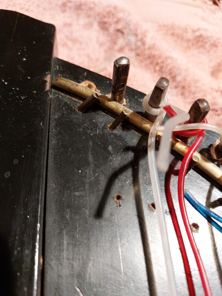 Dann fanden sich im Hals Bohrungen, die darauf schließen lassen, dass im Baß eventuell eine kürzere Mensur angedacht war: